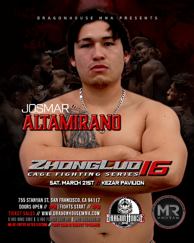 San Francisco's own Dragon House MMA once again brings the Mixed Martial Arts war to the Bay Area! The best amateur and professional fighters from the west coast and beyond compete for glory in the cage. Come witness these world-class athletes including females and 2 world title fight!